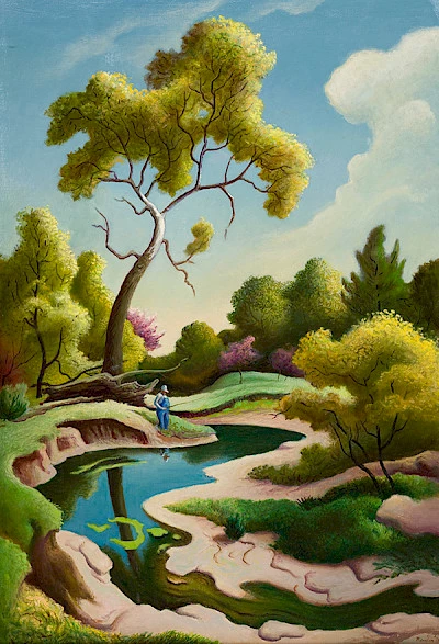 Thomas Hart Benton (Neosho, Missouri, 1889 - 1975, Kansas City, Missouri), Clay County Farm, 1971, oil on canvas, 32 x 22 in., Arkansas Museum of Fine Arts Foundation Collection: Bequest from the Estates of Louise and Fred Dierks. 2012.008.001.