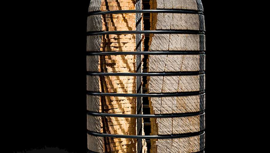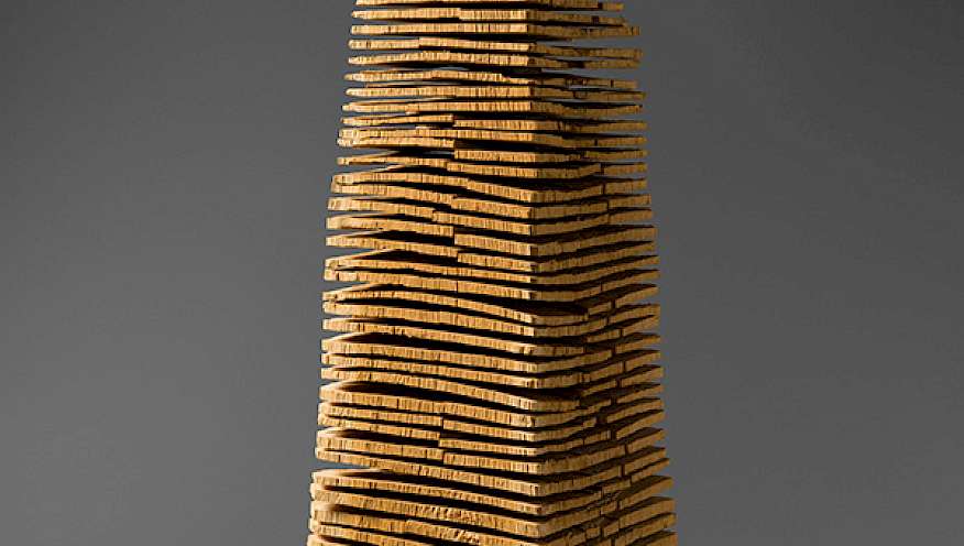 David NashDavid Nash (Esher, England, 1945 - ), Crack & Warp Column, 2003, chainsaw carved white oak, 33 1/4 x 11 1/4 x 11 1/4 in., Arkansas Museum of Fine Arts Foundation Collection: Purchased with a gift from John and Robyn Horn. Photography by Edward C. Robison III. 2004.005.001.